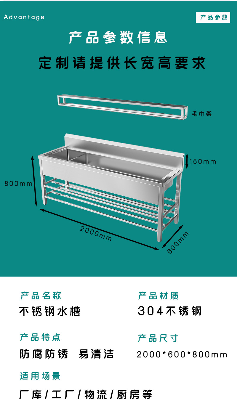 201 stainless steel sink, commercial long mop sink for stations and schools, stainless steel hand washing sink