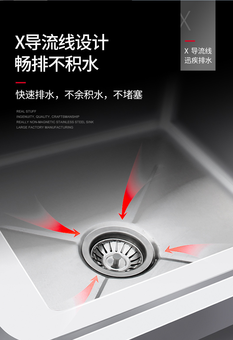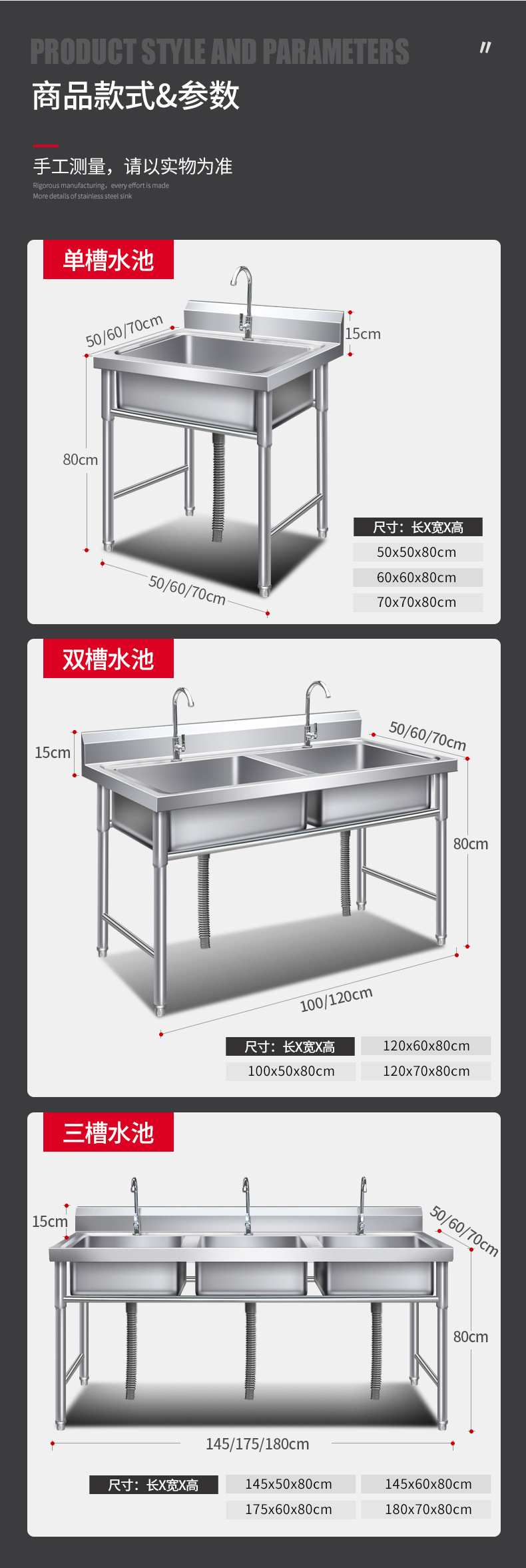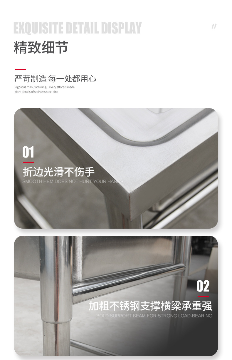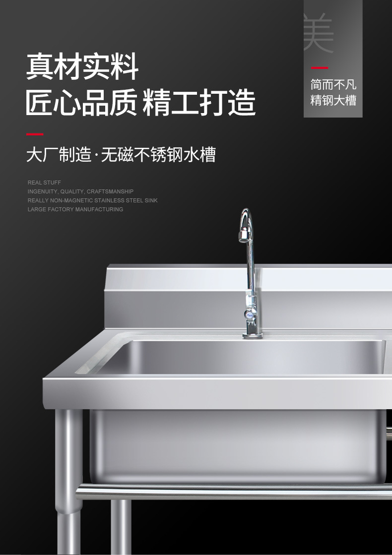 Commercial single-basin stainless steel sink for kitchen use, suitable for washing vegetables, washing dishes, and as a hand-washing basin, with an integrated thickened design