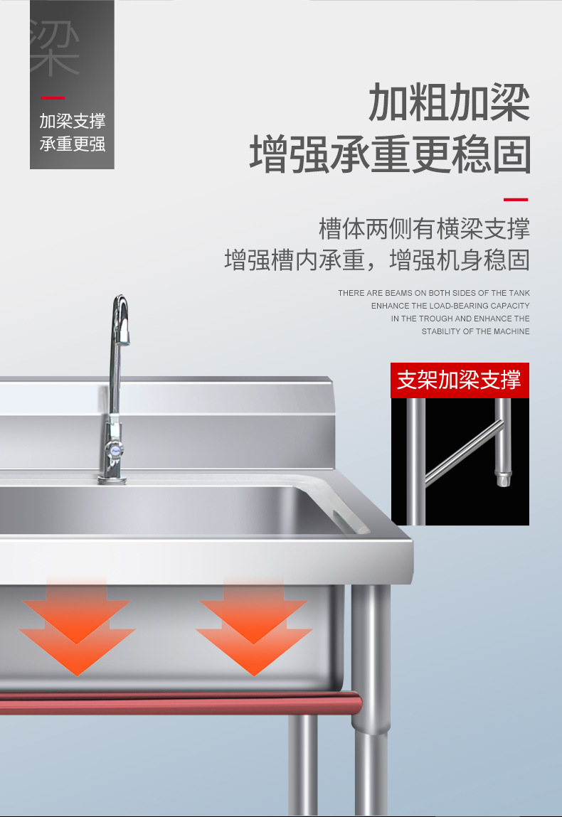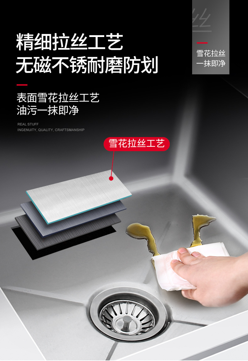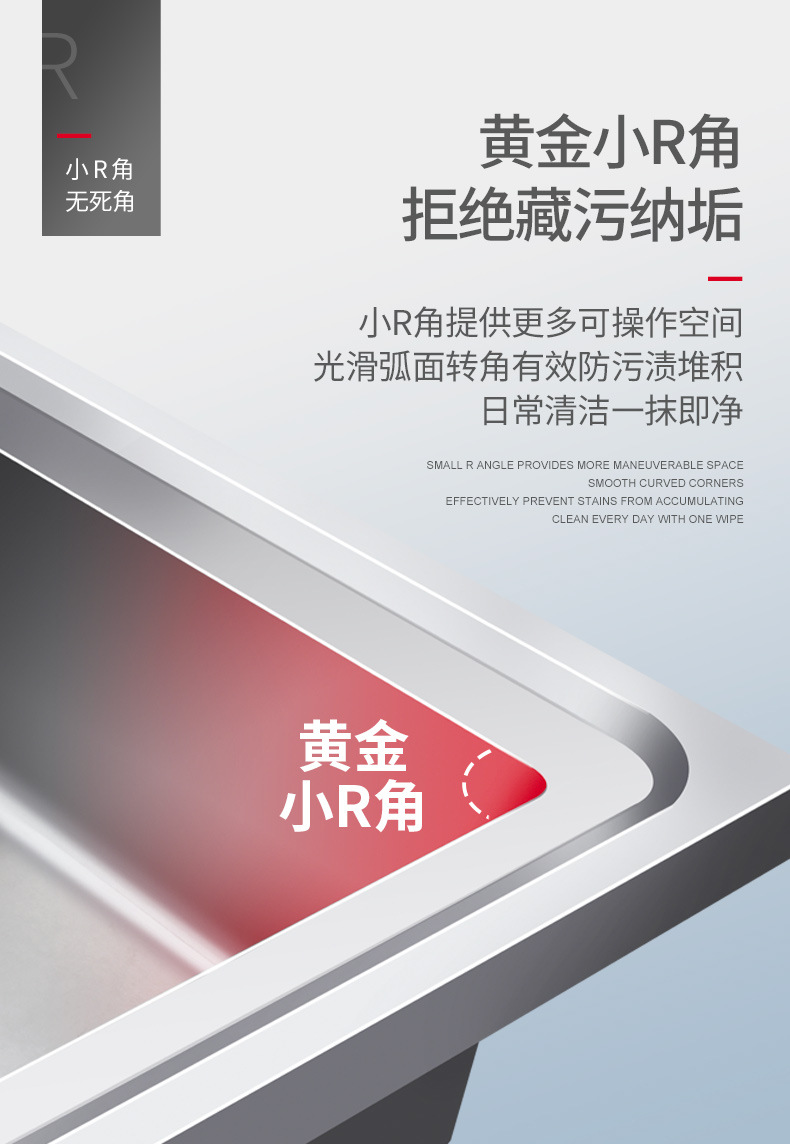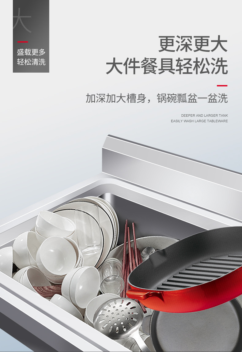 Commercial single-basin stainless steel sink for kitchen use, suitable for washing vegetables, washing dishes, and as a hand-washing basin, with an integrated thickened design