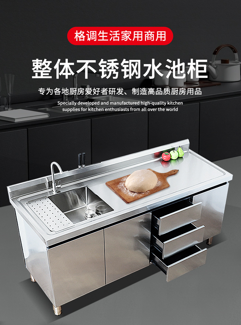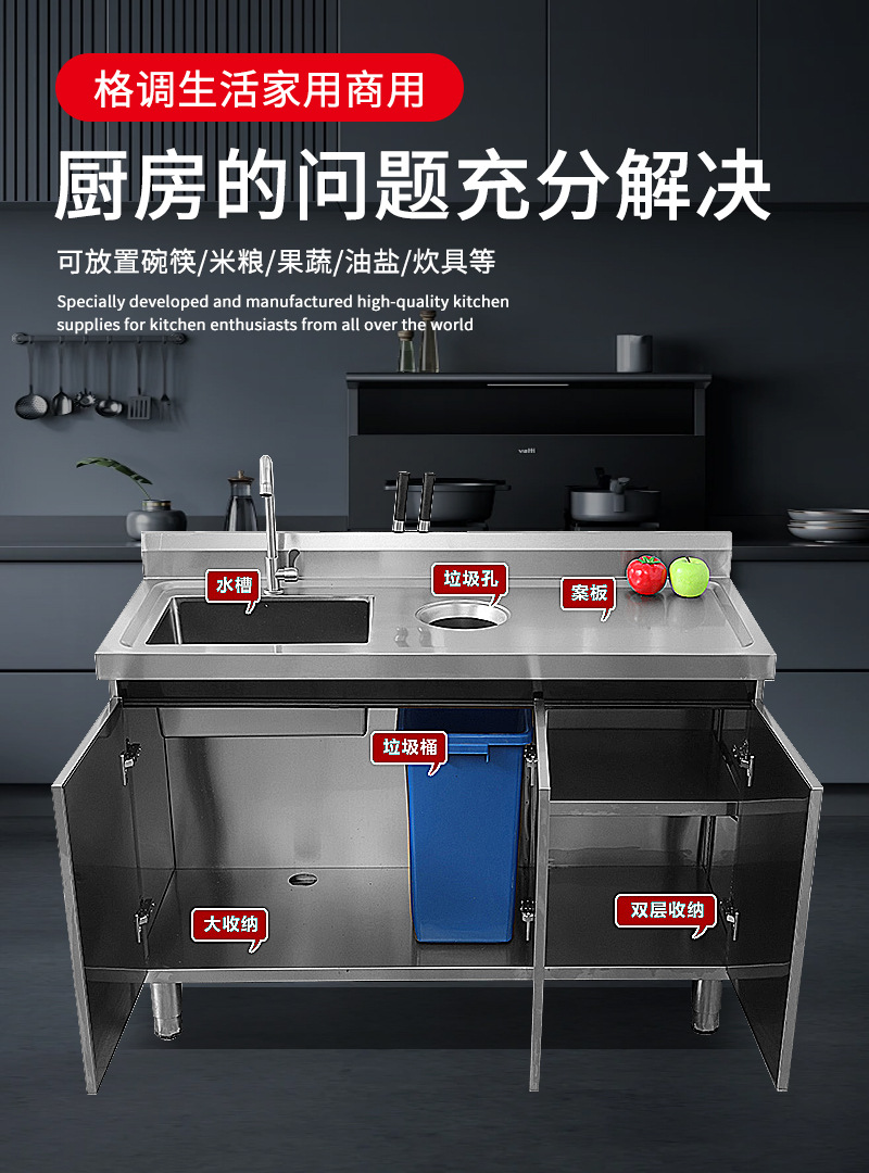 Custom 304 stainless steel sink and vegetable basin, fruit cutting workbench, integrated cutting and washing sink for fruit shops