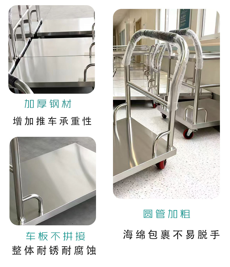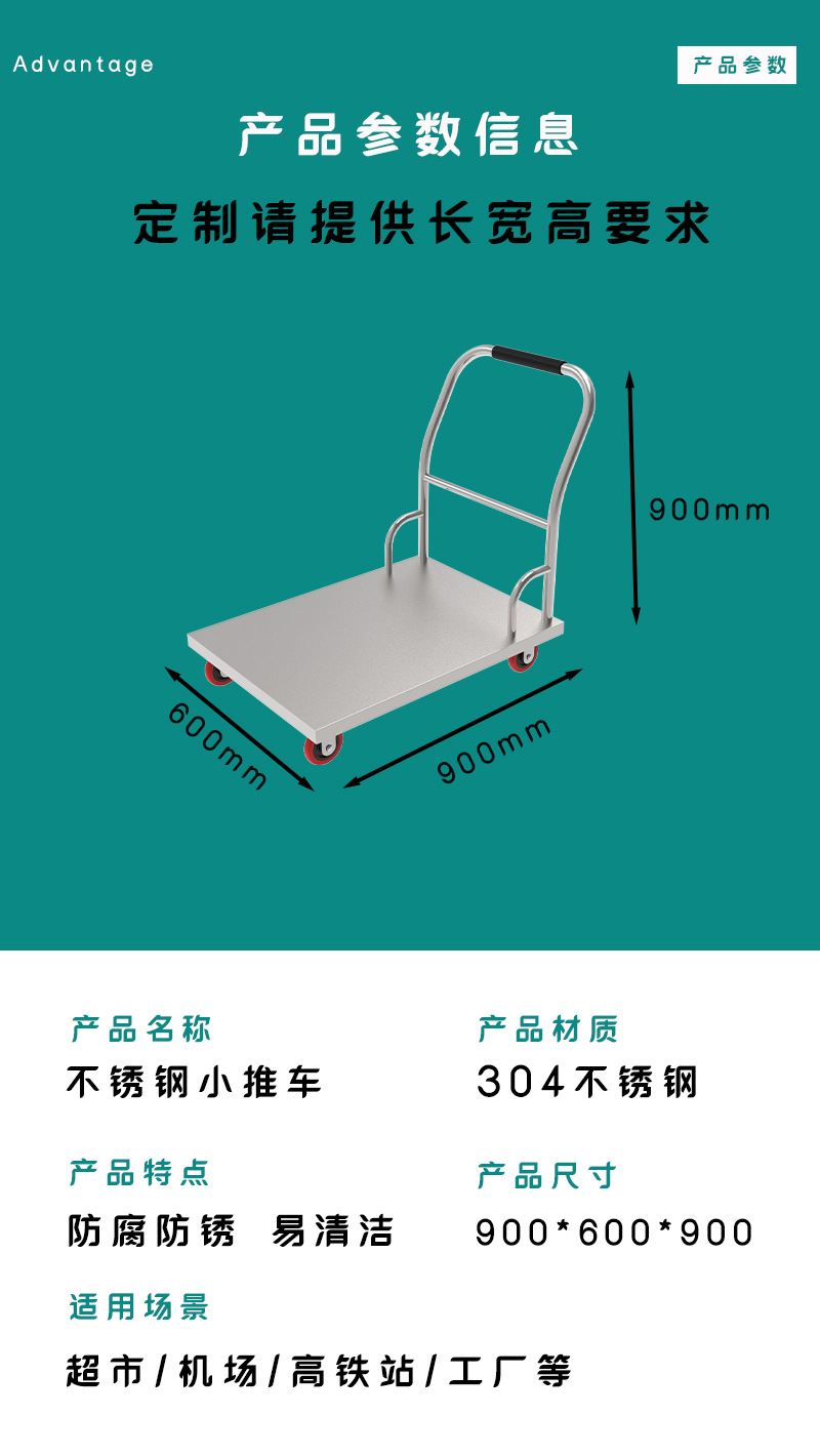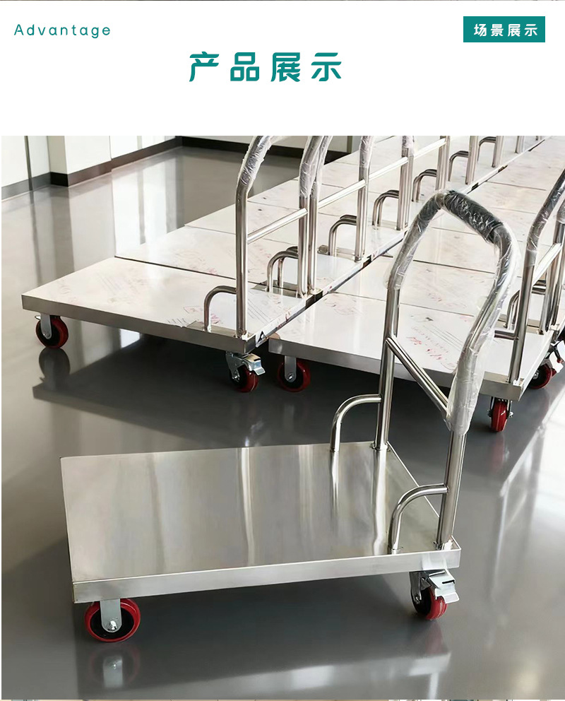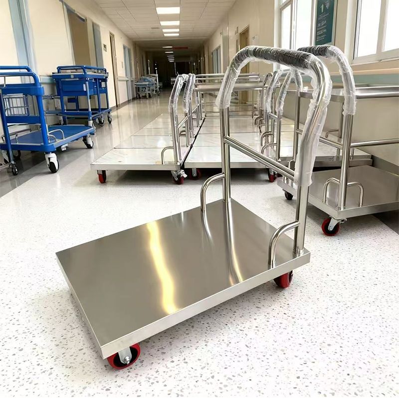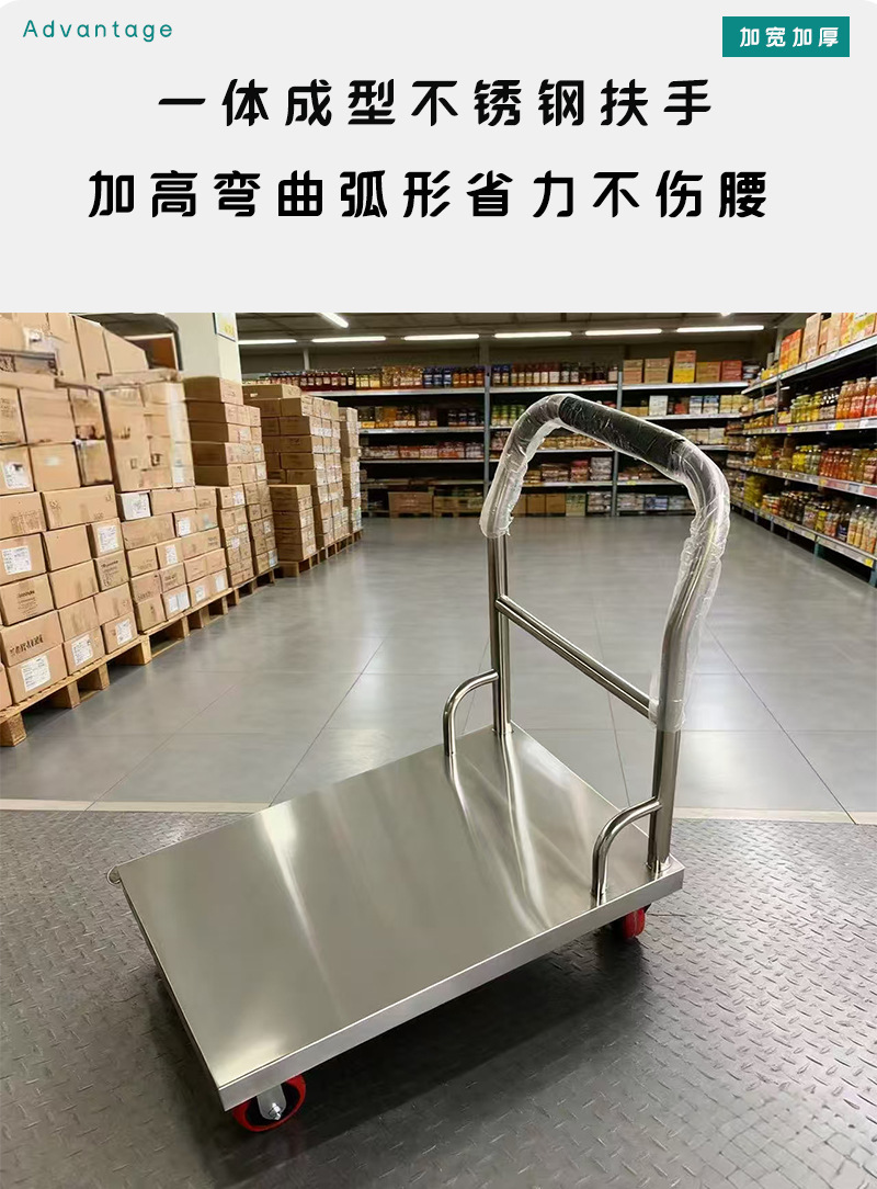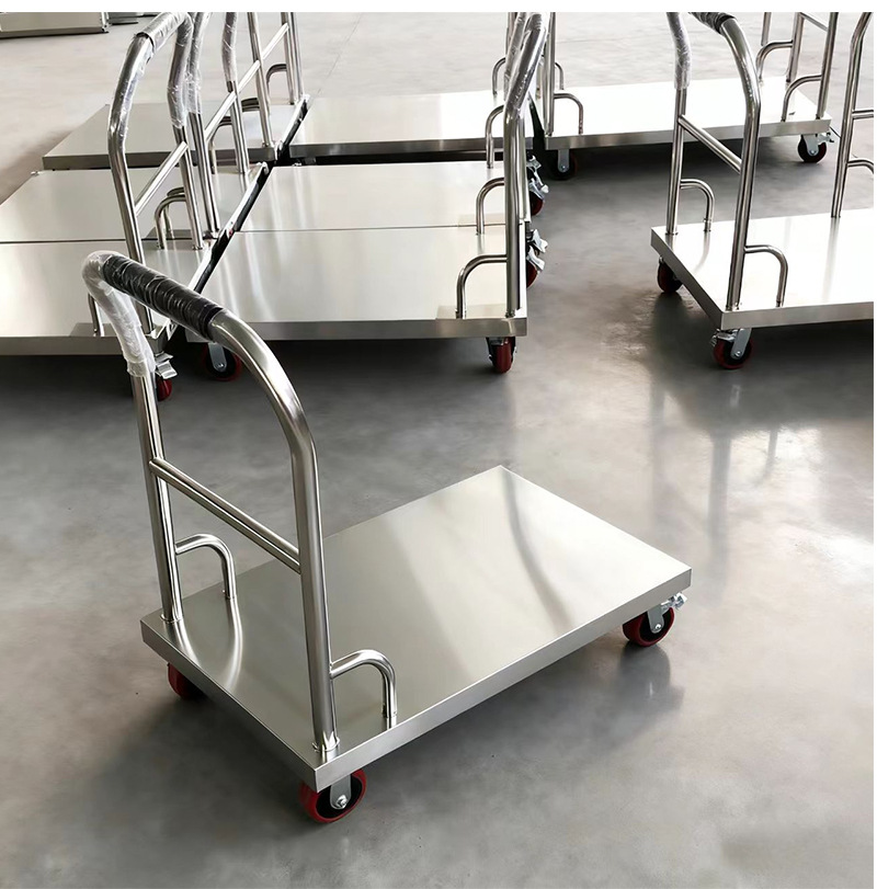 Multi-purpose stainless steel cart, stainless steel flatbed cart for cargo transport, logistics flatbed handcart with universal wheels
