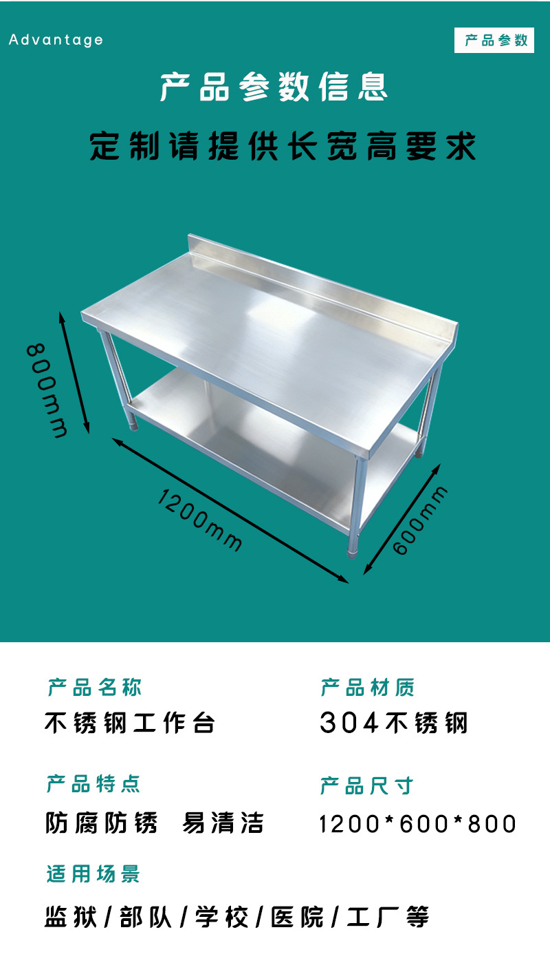 Restaurant kitchen stainless steel workbench, dual-purpose serving and packing workbench, double-layer 304 workbench