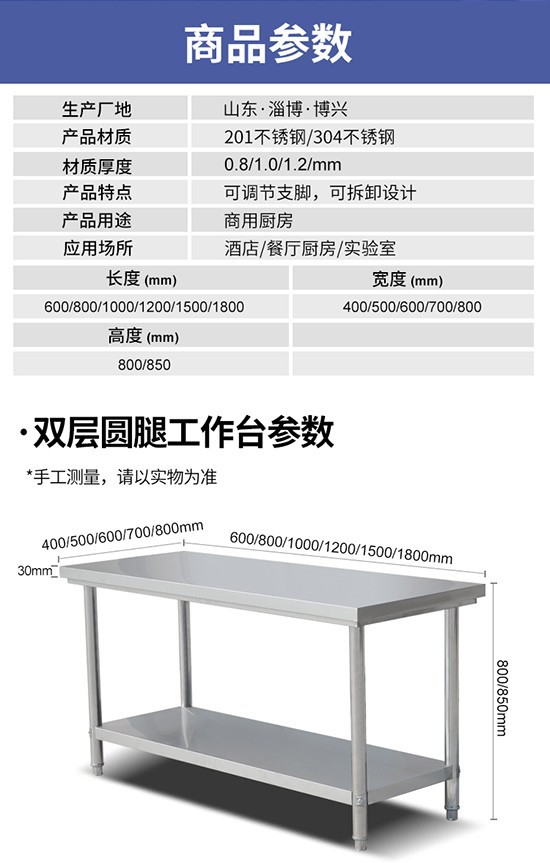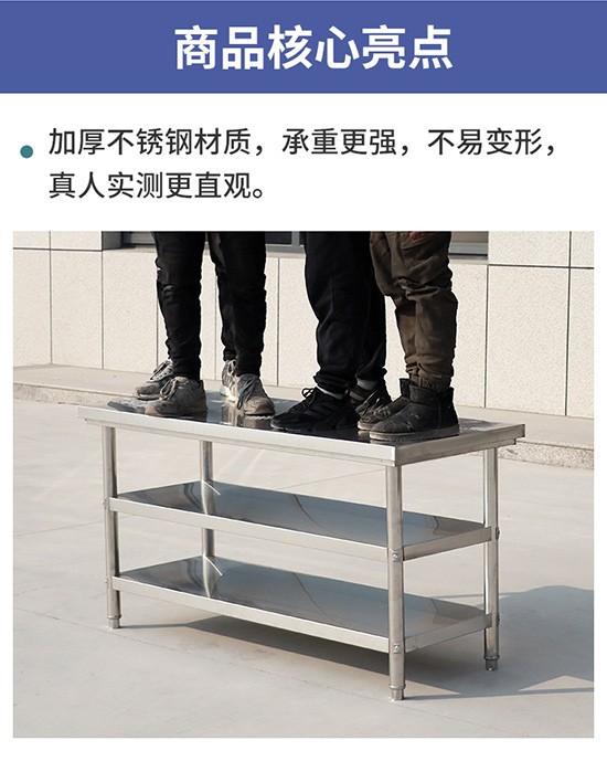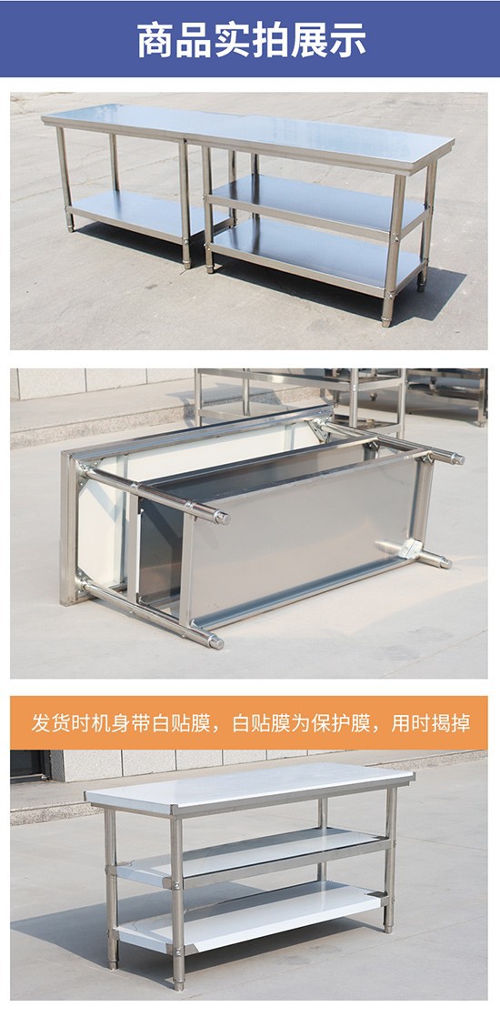 Stainless steel thickened workbench for restaurant kitchens, baking, packing, and chopping, rectangular shape