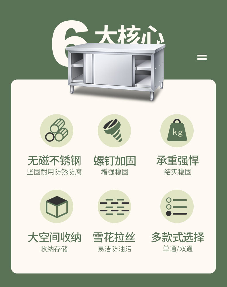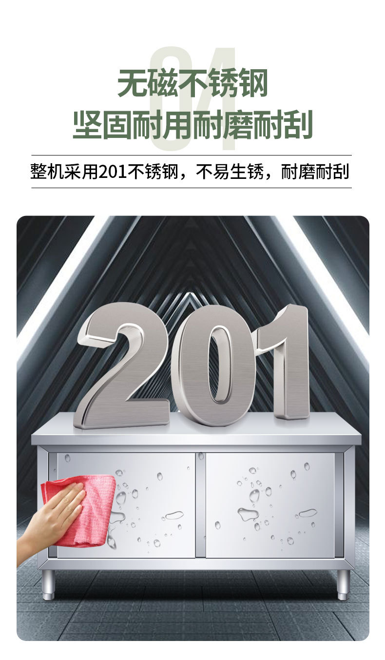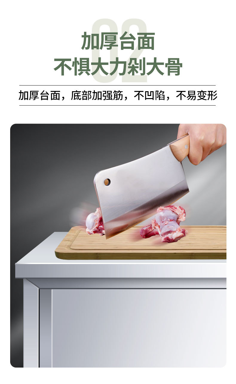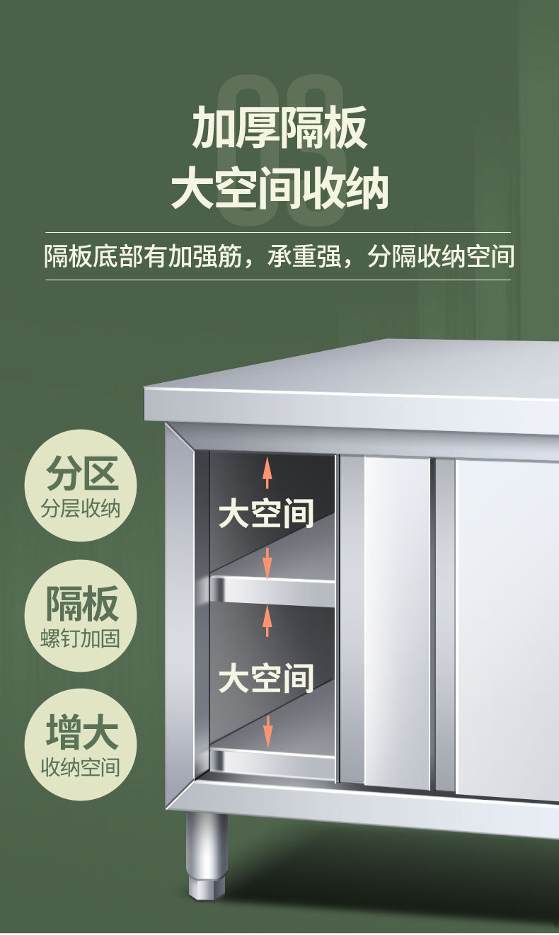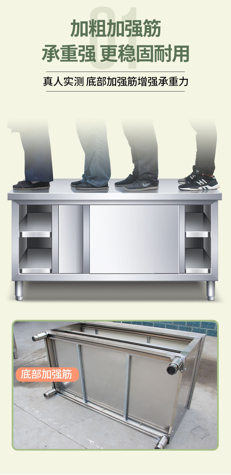 Stainless steel workbench kitchen countertop with sliding doors, chopping board storage cabinet, cutting table for commercial use in restaurants