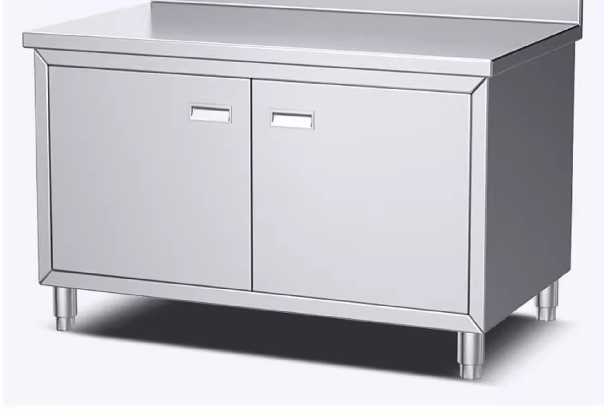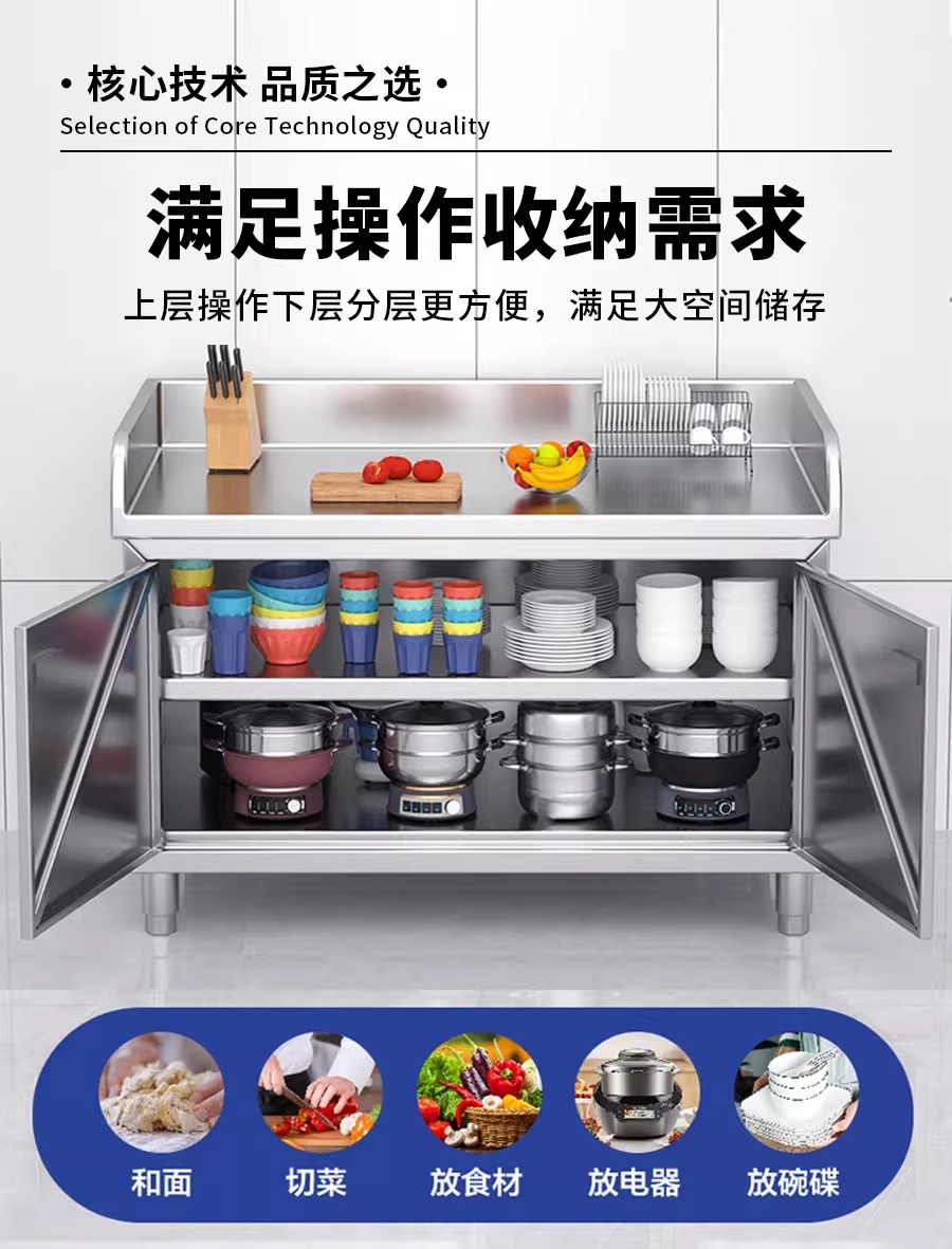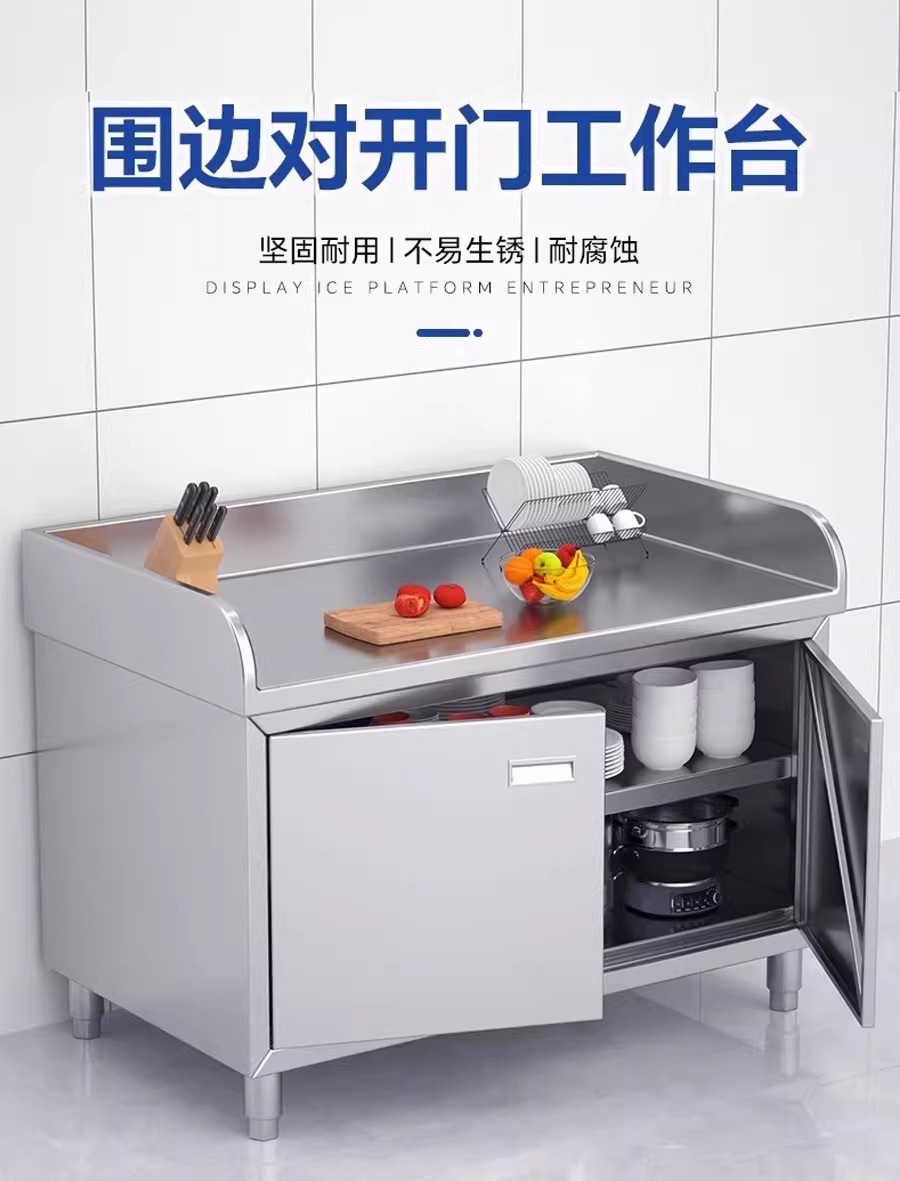 Three-sided workbench, cabinet, serving table, operation table, vegetable cutting table for hotels and restaurants, 304 stainless steel, double doors