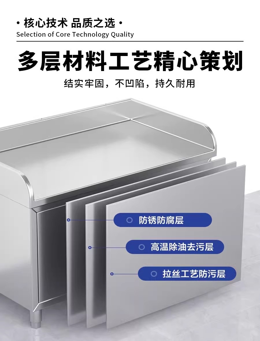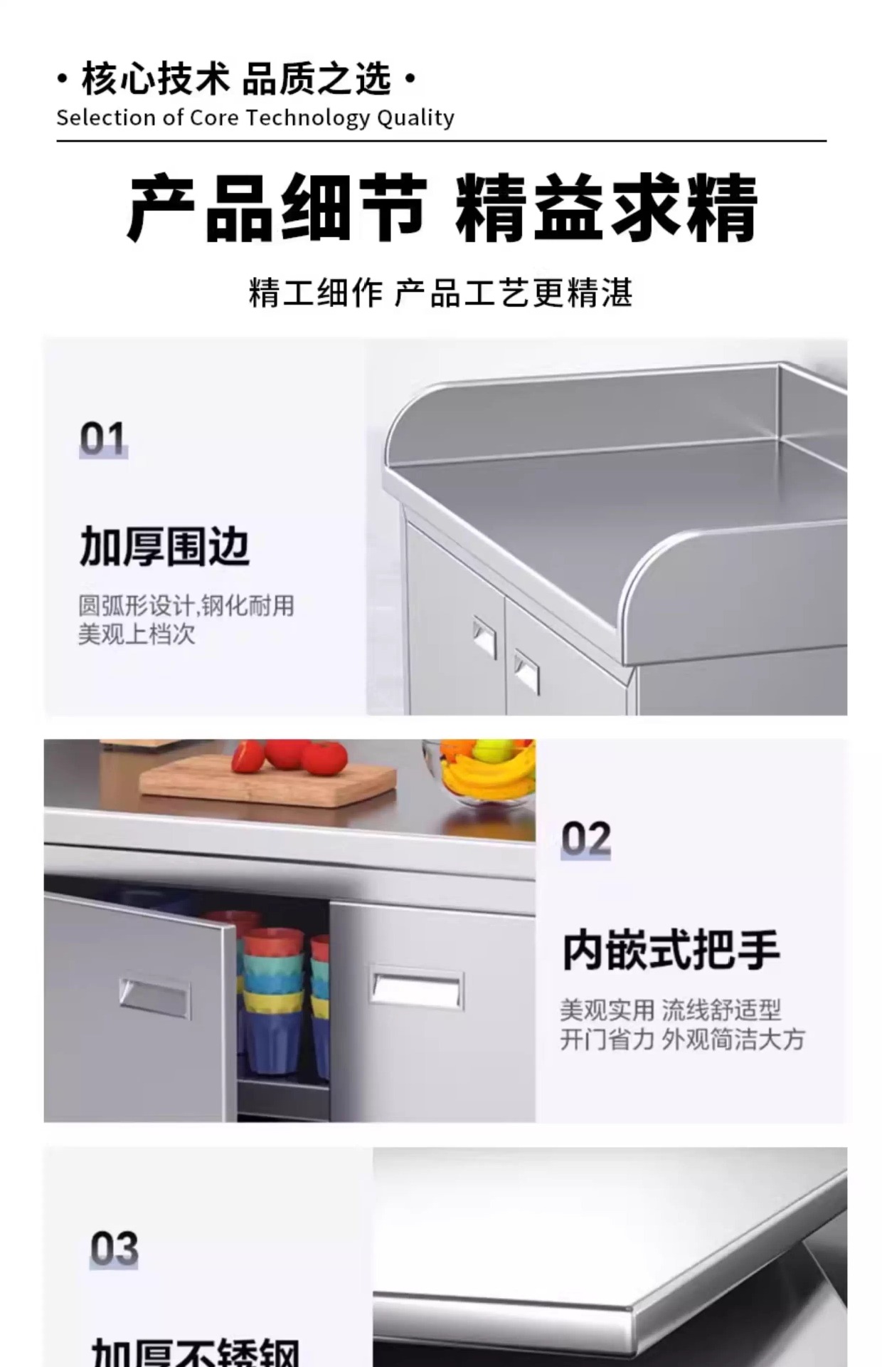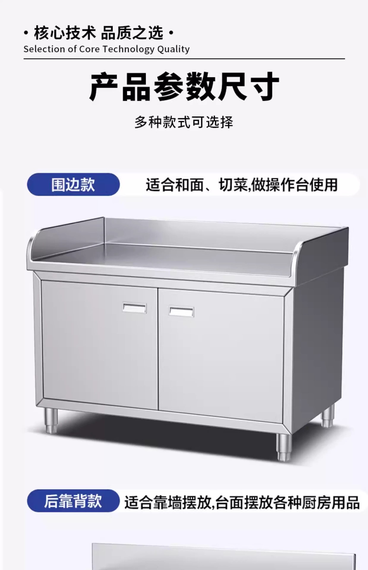 Three-sided workbench, cabinet, serving table, operation table, vegetable cutting table for hotels and restaurants, 304 stainless steel, double doors